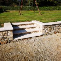 térrasse en pierre granit et facade en pierre avec joints a la chaux